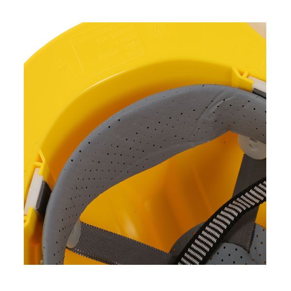 The hard hat is typically made of a hard outer shell made of plastic or fiberglass and a suspension system that sits inside the hat to provide shock absorption and cushioning. It may also have additional features like a chin strap, ventilation holes, and reflective materials for improved visibility in low light conditions.