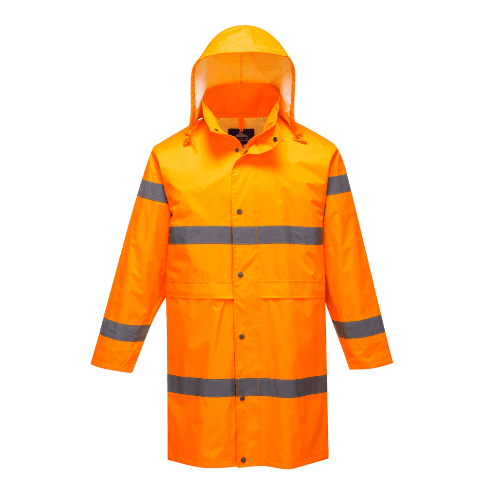 The High Quality Raincoat with Hi-Vis Reflective Tapes is a durable and waterproof raincoat that features reflective tapes for enhanced visibility and safety.