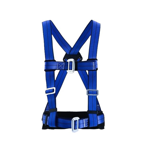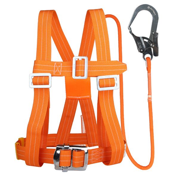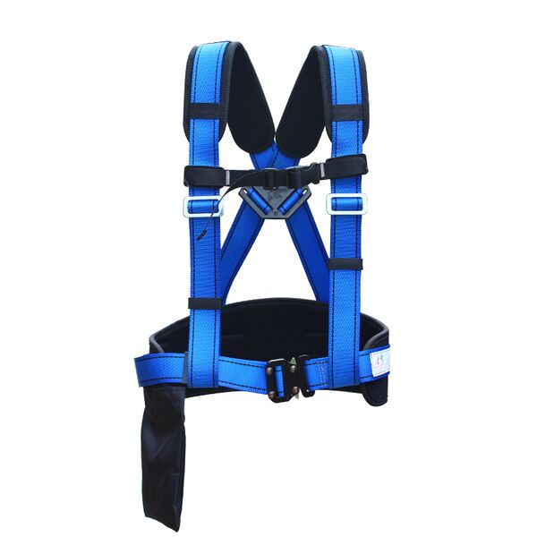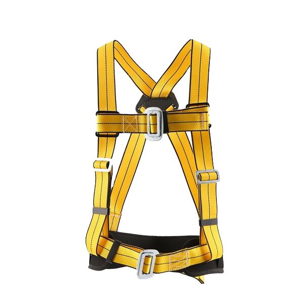 Industrial safety belts typically consist of a full body harness made of strong, durable materials such as nylon or polyester webbing, with adjustable straps to fit various body sizes. The harness is designed to distribute the weight of a person across their body, minimizing the impact of a fall.